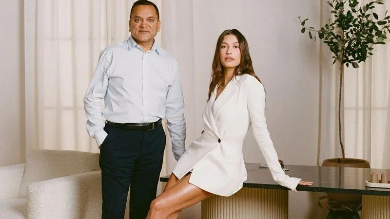 Left: e.l.f. Chairman and CEO Tarang Amin, right: Rhode founder Hailey Bieber. Credit : e.l.f